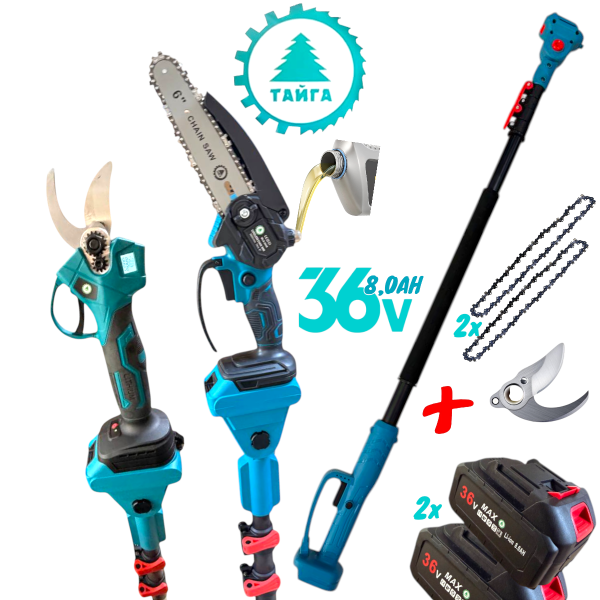 49.00 € (95.80 лв.)Телескопичен Прът Акумулаторна Лозарска Ножица и Резачка за Клони Трион с Автоматично Омасляване 36V 8AH KRAFTROYAL Безчетков Комплект 3в1 + Подарък Резервен Нож