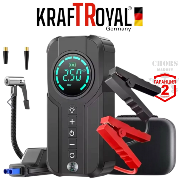 Стартерен Бустер за Автомобил Външна Батерия POWER BANK 12V JUMP STARTER Стартер за Акумулатор Подаване на Ток с Компресор и Фенер