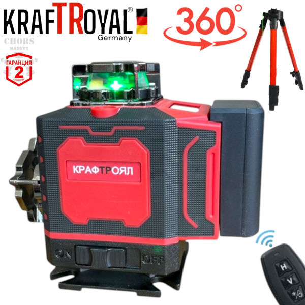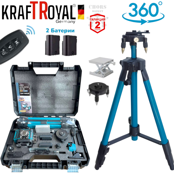 4D Лазерен Нивелир с 16 линии KRAFTROYAL 4Д Самонивелиращ със сензор индикация на батерия със тринога трипод стойка