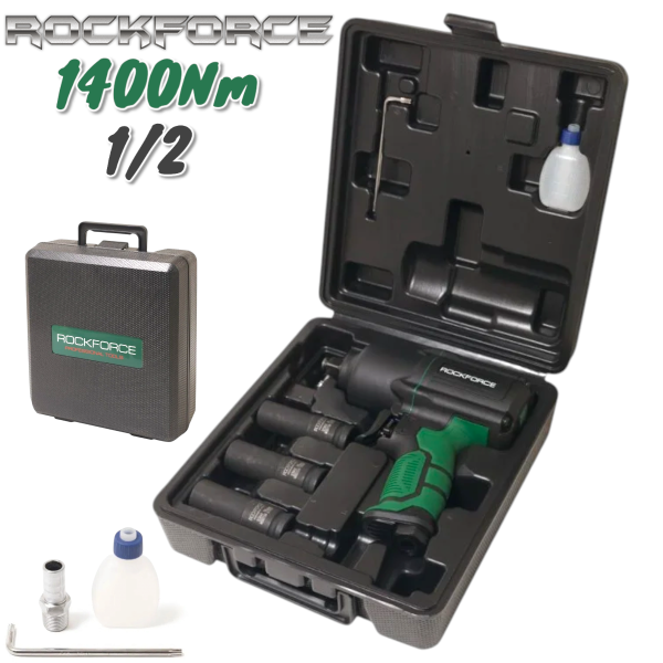 Пневматичен Гайковерт Ударен 1400Nm 1/2″ ROCKFORCE в куфар с допълнителни вложки