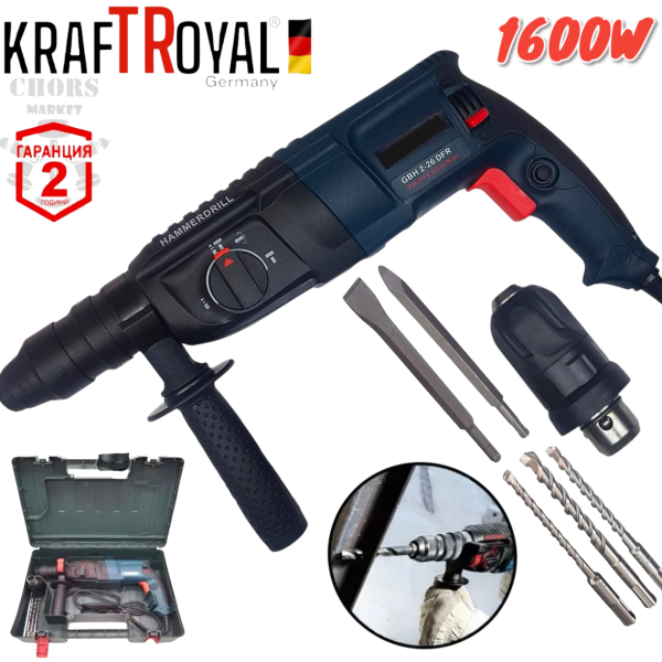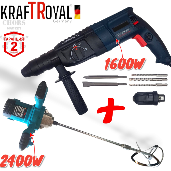 Пробивна Бормашина Перфоратор Ударен 1600W KRAFT + Бъркалка за Бетон 2400W Миксер за Цимент KRAFTROYAL