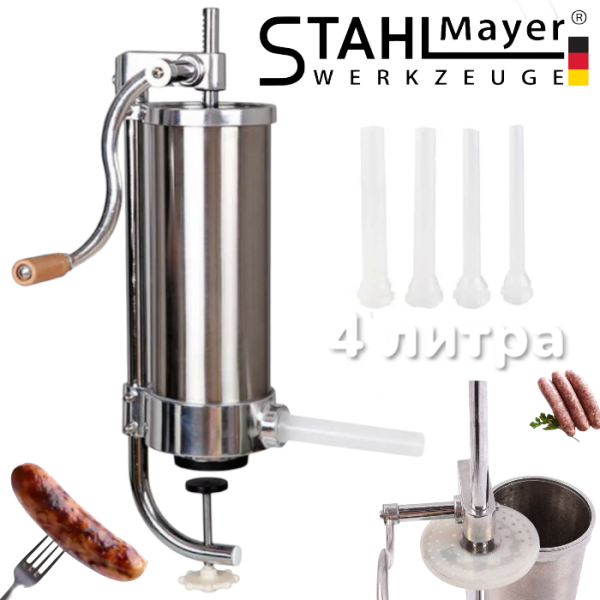 Пълначка за Месо Наденици Колбаси Кайма и др 5 литра Професионална Вертикална Неръждаема Стомана STAHLMAYER