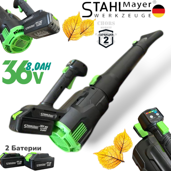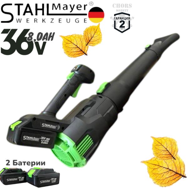 Акумулаторна Въздуходувка STAHLMAYER 36V 8.0AH Духалка за Листа 2 батерии и зарядно