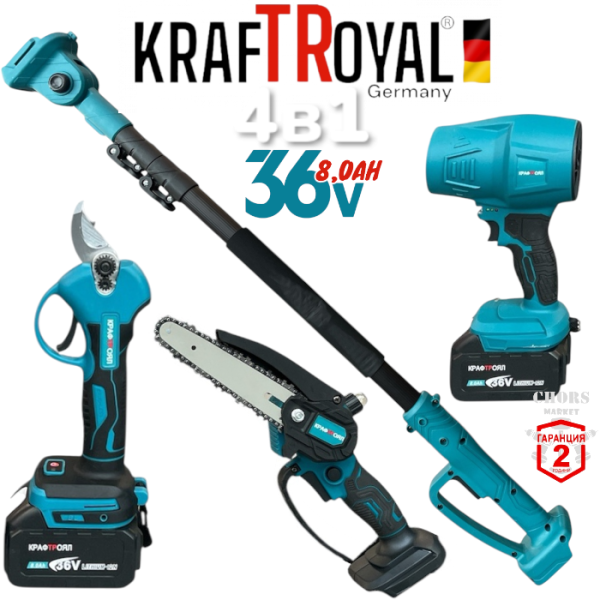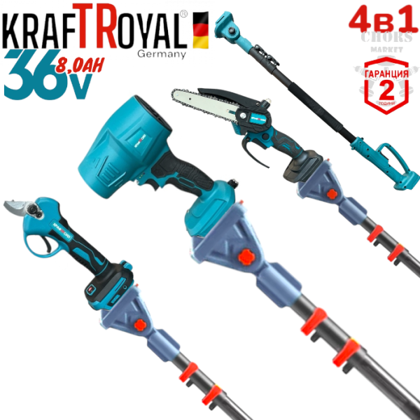 2в1 Акумулаторна Безчеткова Лозарска Ножица 33мм и Безчеткова Резачка За Клони 20см шина STAHLMAYER 2 броя батерии подарък Резервен Нож за Ножица