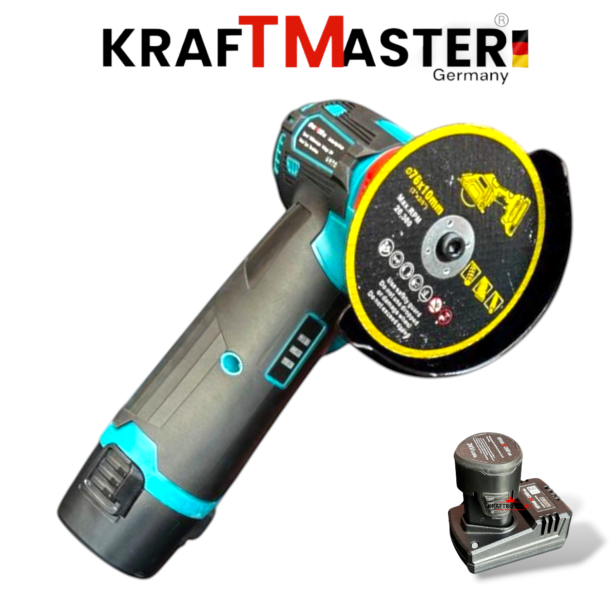 Този акумулаторен ъглошлайф от KRAFT е идеален инструмент за рязане и шлайфане на различни материали като дърво, метал, пластмаса и други.