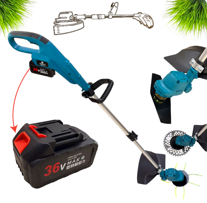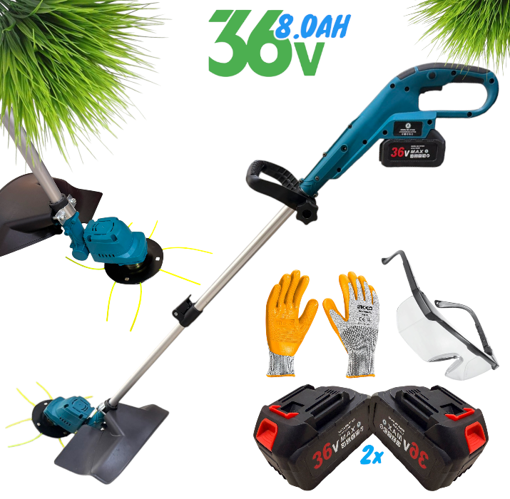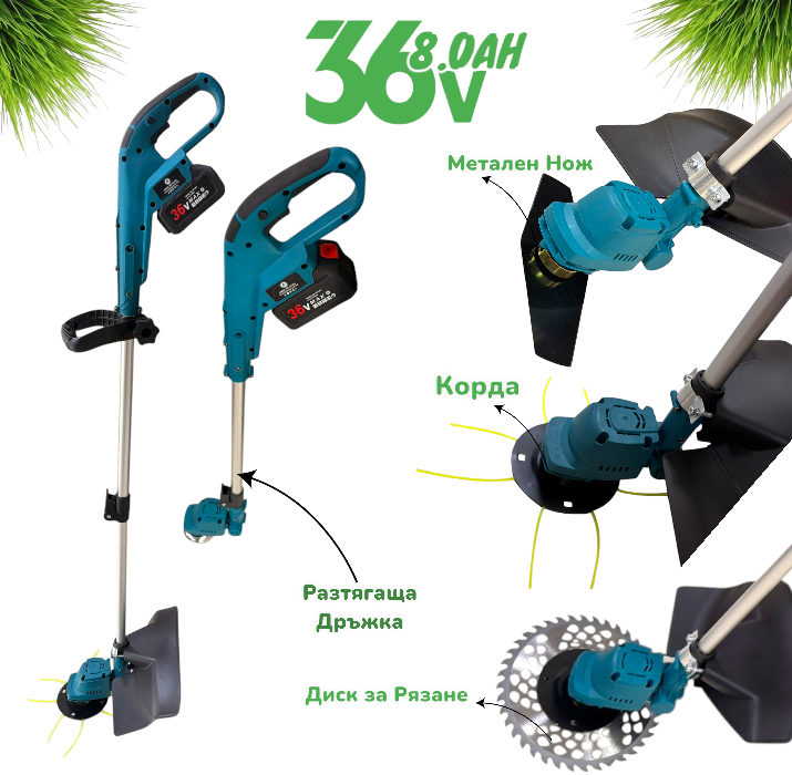 Акумулаторна Коса за Трева с Корда 36V 8,0AH 2 батерии ширина на косене 26 см е телескопична дръжка.