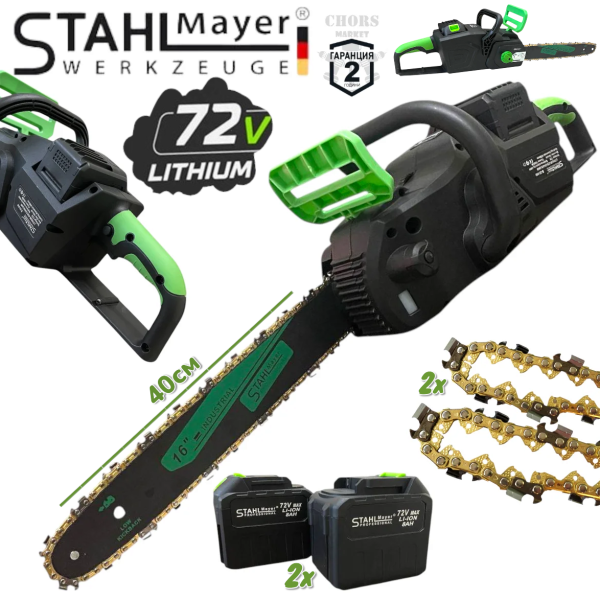 С 2 литиево-йонни батерии (36V, 8Ah) и зарядно в комплекта, можеш да работиш продължително без прекъсване.