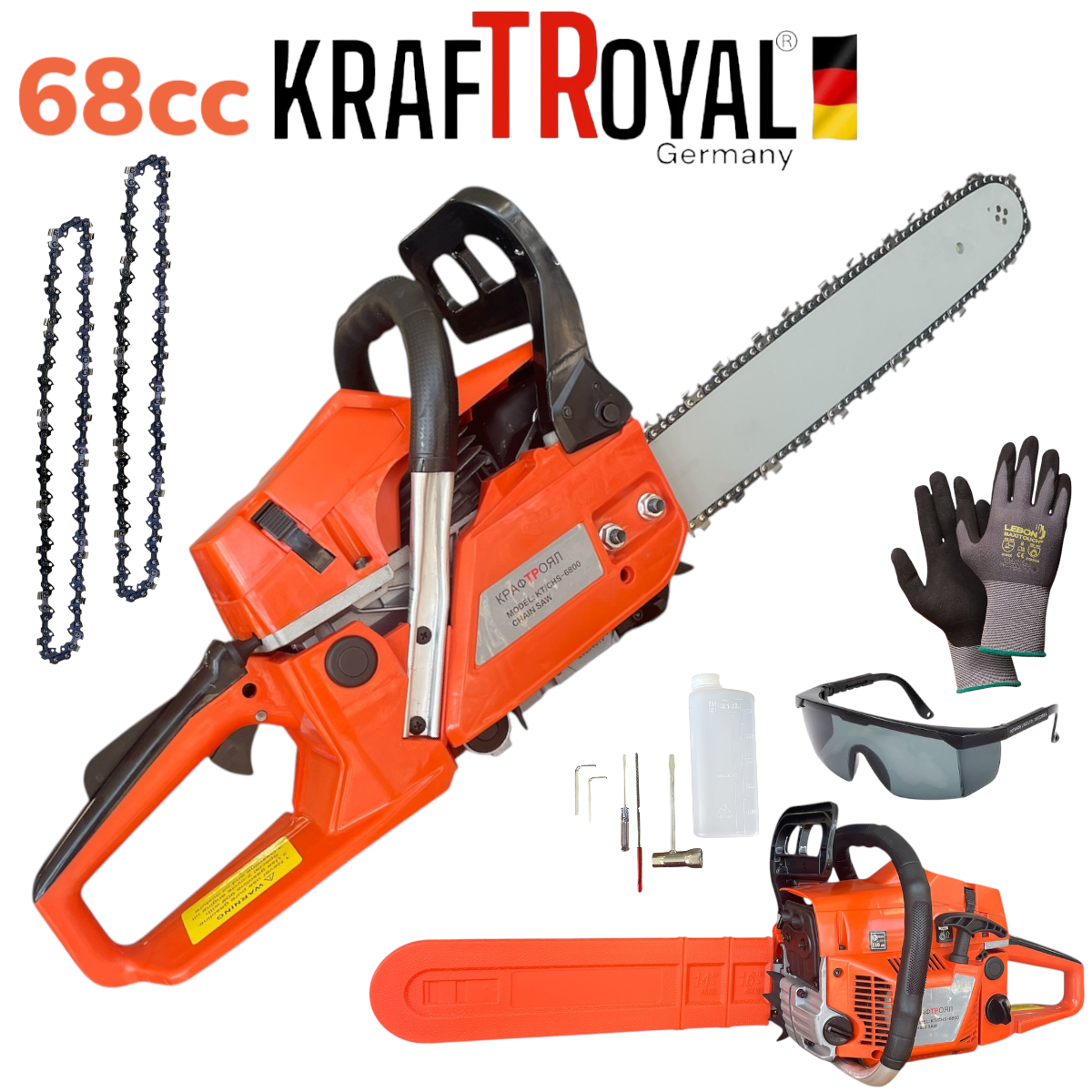 Бензинова Резачка за Дърва Верижен Трион 40см 68cc KRAFTROYAL 2 Вериги