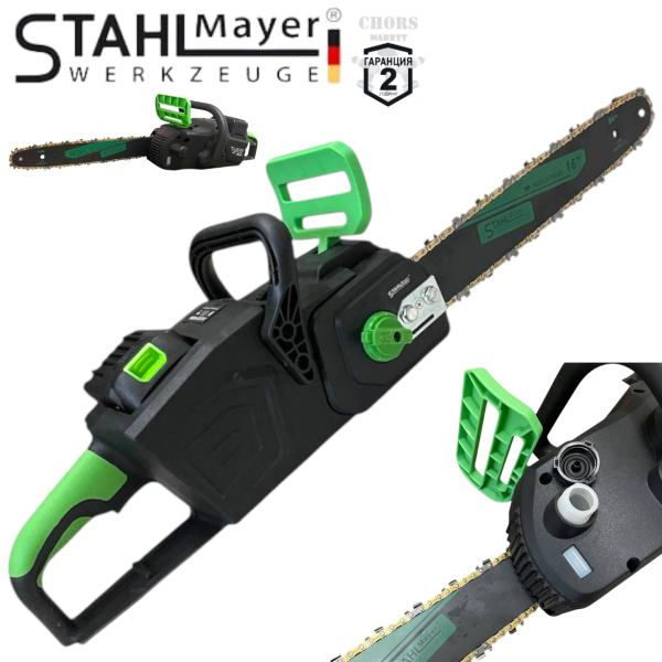 Акумулаторна Верижна Резачка за Дърва STAHLMAYER Трион 72V 8,0AH – 16″ 40см Шина 2 Вериги Дисплей и Активна Спирачка