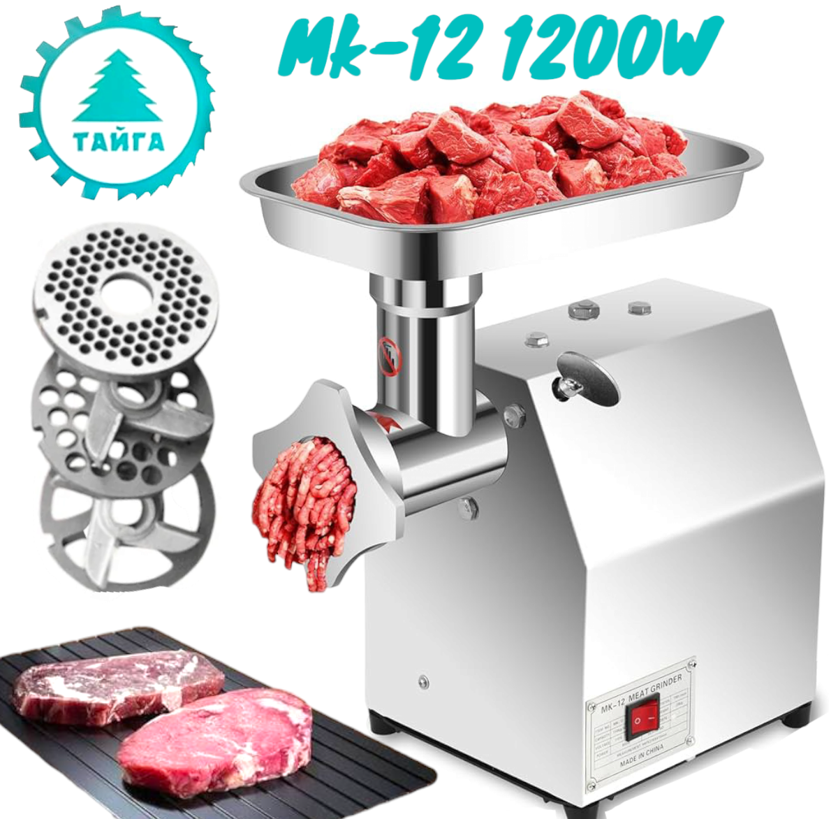 Професионална Месомелачка MK/TK-12 1200W ТАЙГА С Редуктор – Неръждаема Стомана
