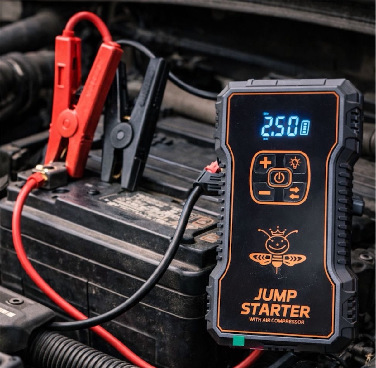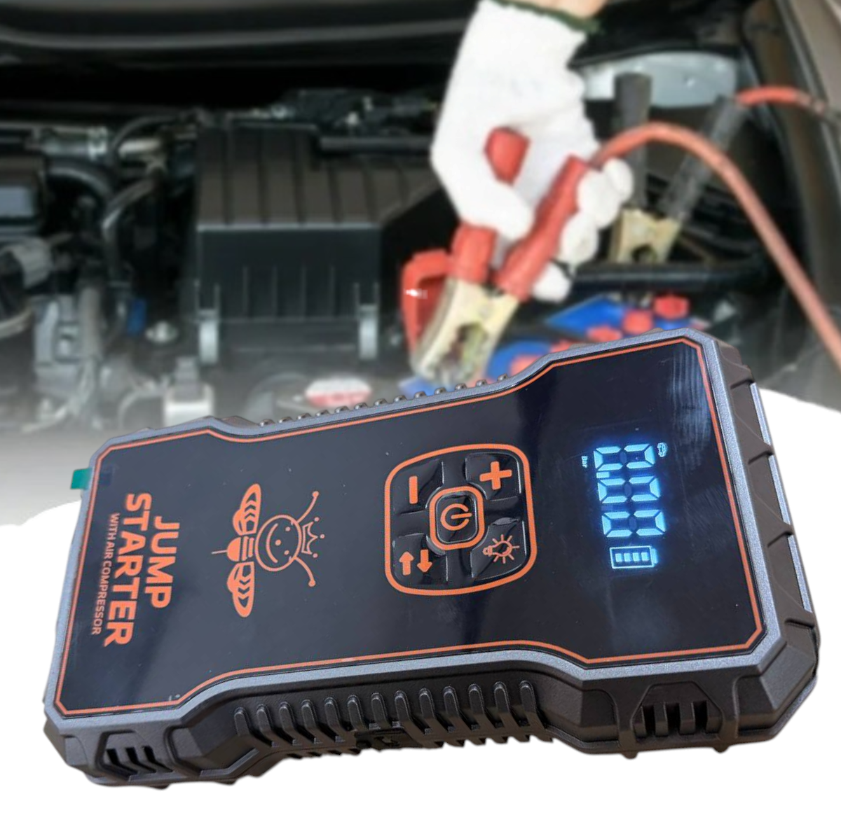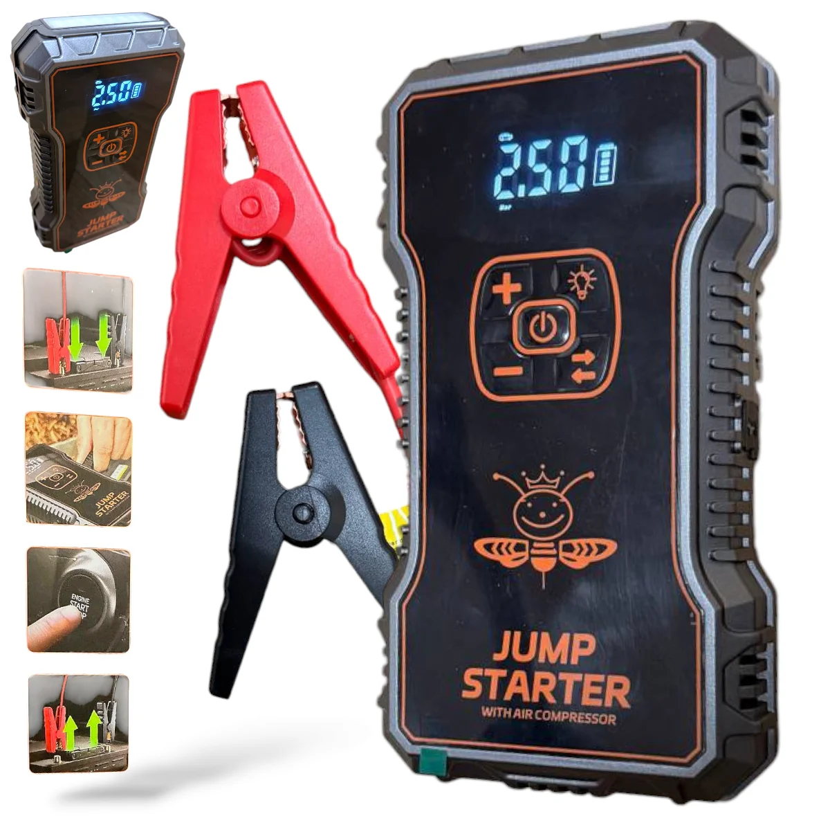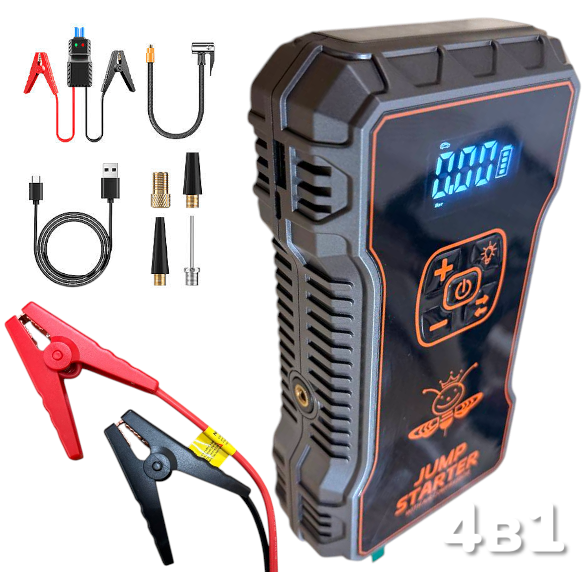 Този надежден и качествен уред комбинира авариен старт, въздушен компресор с манометър и power bank в едно компактно устройство – идеално за всяка ситуация на пътя.