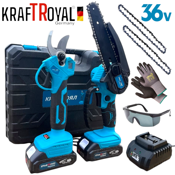 Градинска – Лозарска Акумулаторна Ножица с Дисплей 36V 8,0AH KRAFTROYAL + Подарък Допълнителен Нож