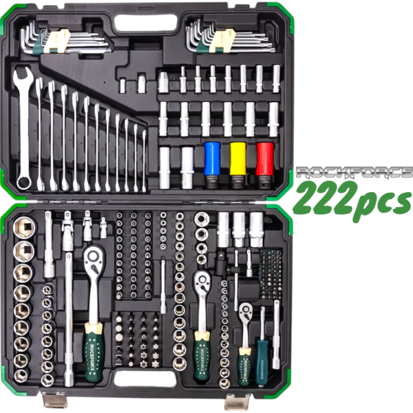 Гедоре Професионално 222 части 1/4″ 3/8″ 1/2″ ROCKFORCE Комплект Инструменти в Куфар