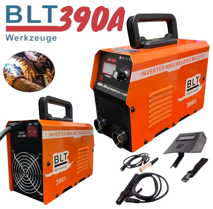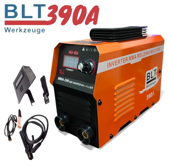 BLT Werkzeuge 390A е висококачествен инверторен електрожен, подходящ както за професионална, така и за домашна употреба. Благодарение на модерната IGBT INVERTER технология, апаратът осигурява стабилна работа, ниска консумация на енергия и прецизен контрол на заваръчната дъга.