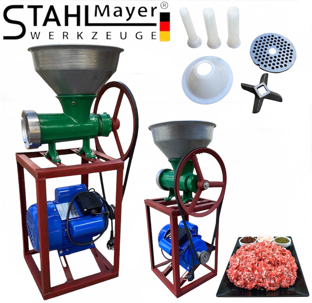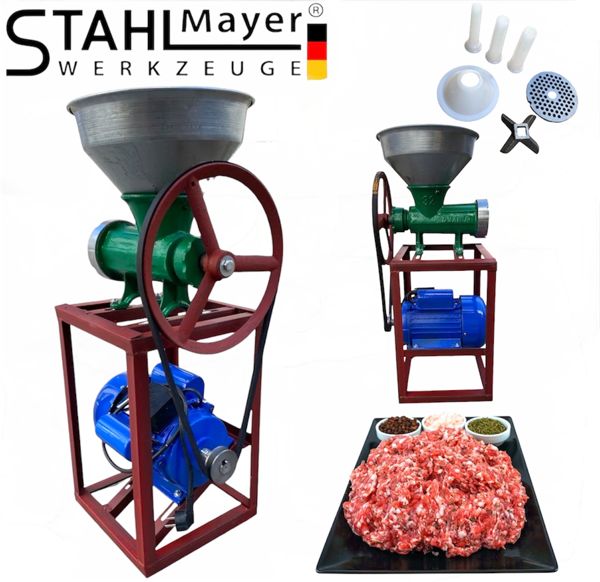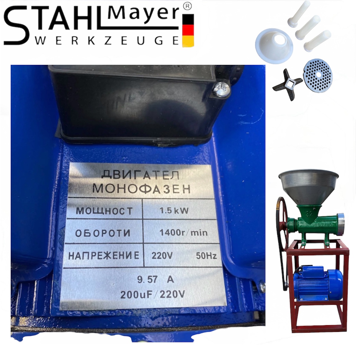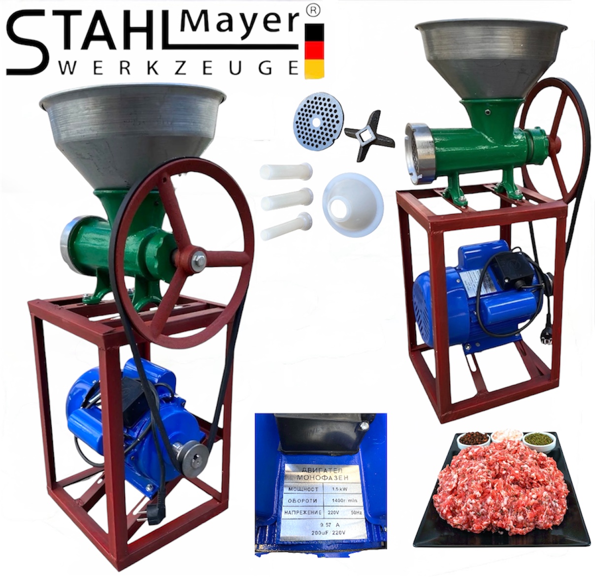 Чугунена Румънска месомелачка 32номер в комплект електромотор с медни намотки , стойка и метална фуния