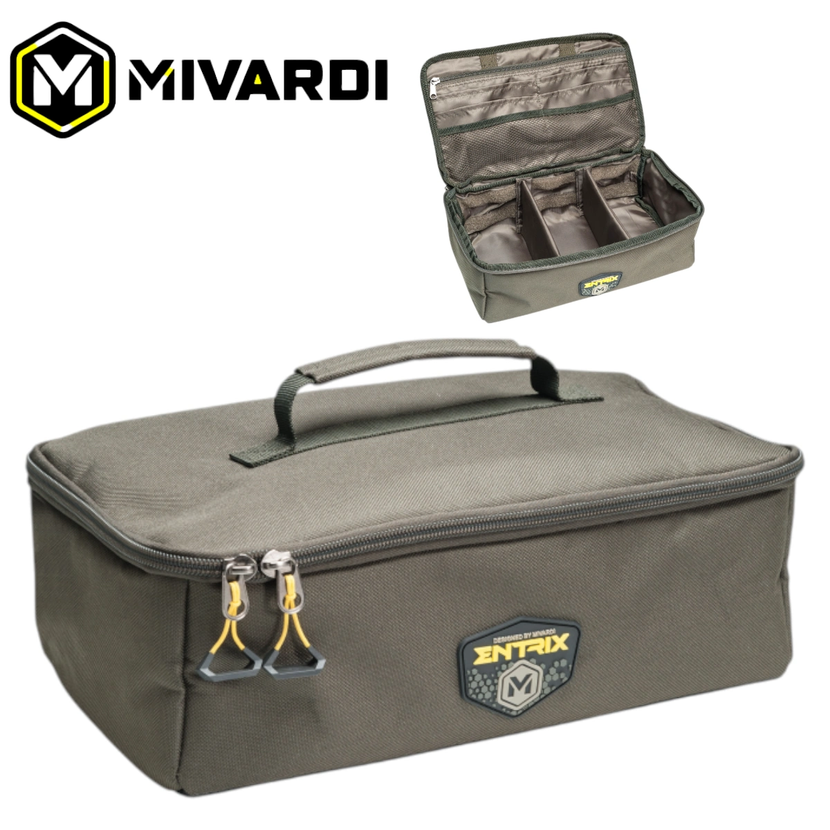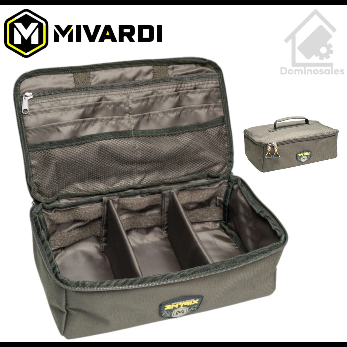 Има общо седем джоба от долната страна на капака за съхранение на дребни предмети. Калъфът е оборудван с здрав цип с два ергономично оформени плъзгача с дизайн на Mivardi и здрава дръжка за носене.
