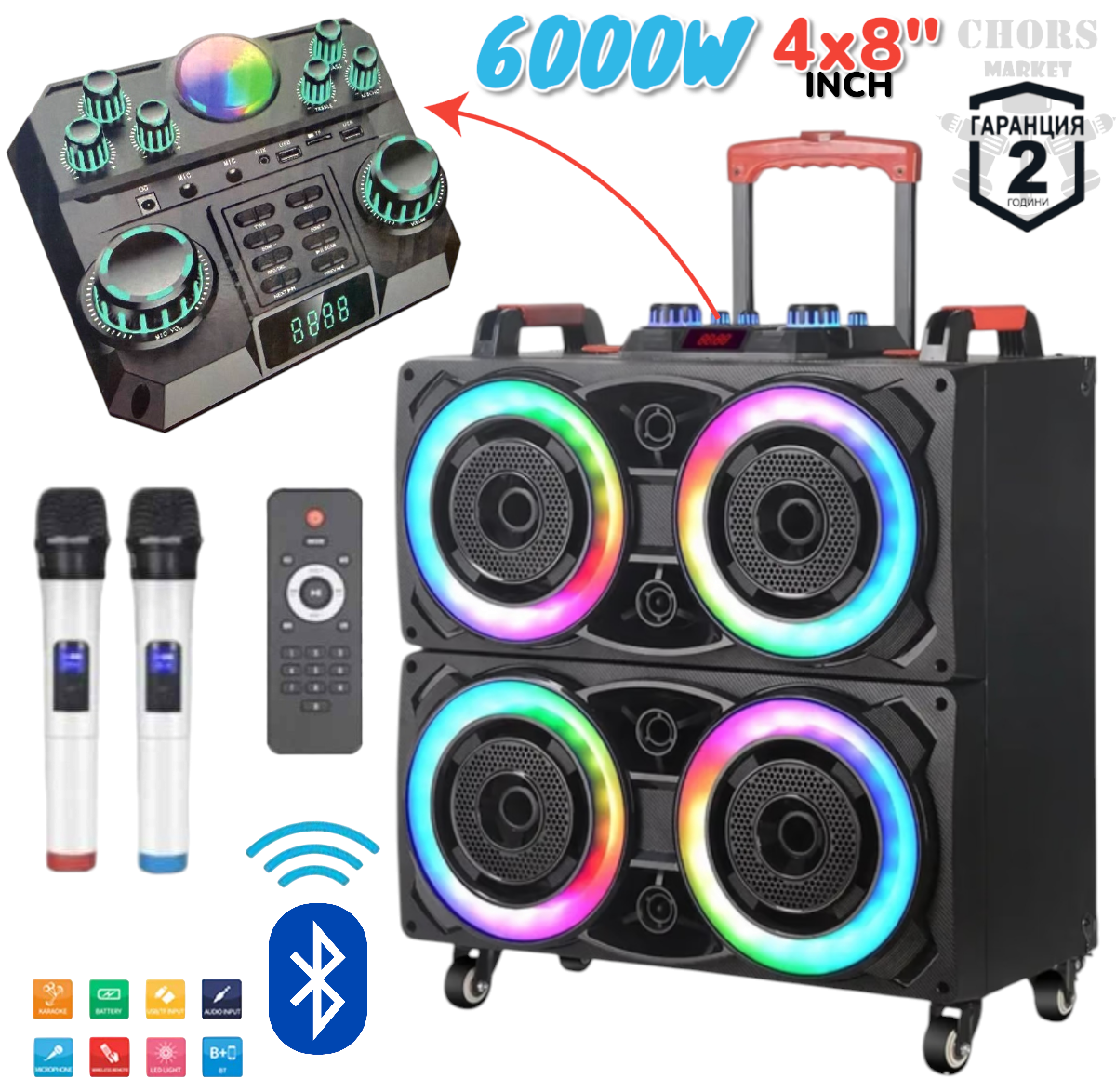 С изходяща мощност от 6000W и 4 мощни говорители по 8 инча, тази тонколона предлага кристално чист звук и мощен бас, който ще осигури незабравимо музикално изживяване.
