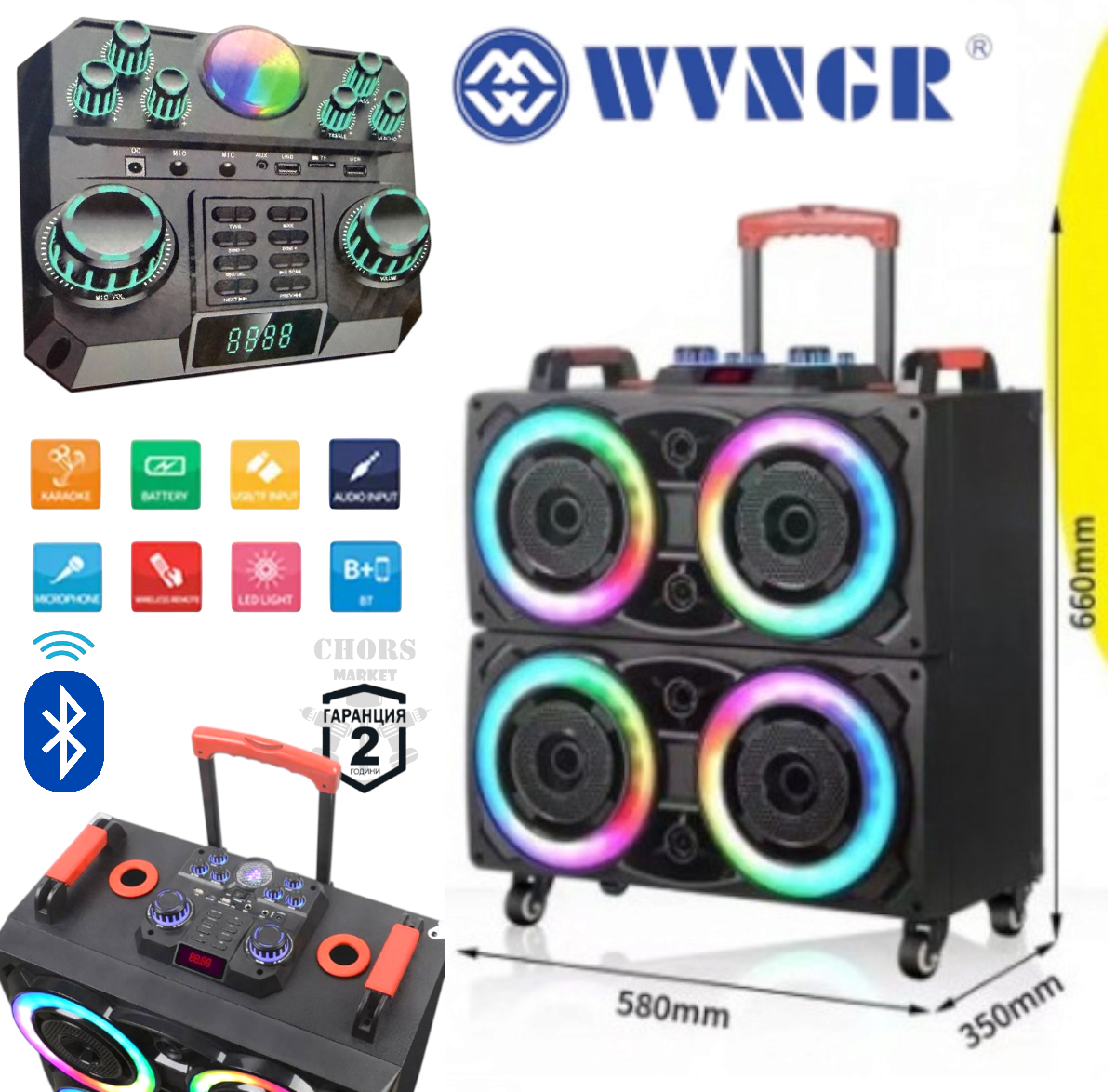 Професионална Караоке Светеща Тонколона WVNGR-8888 с 4×8 инча говорители