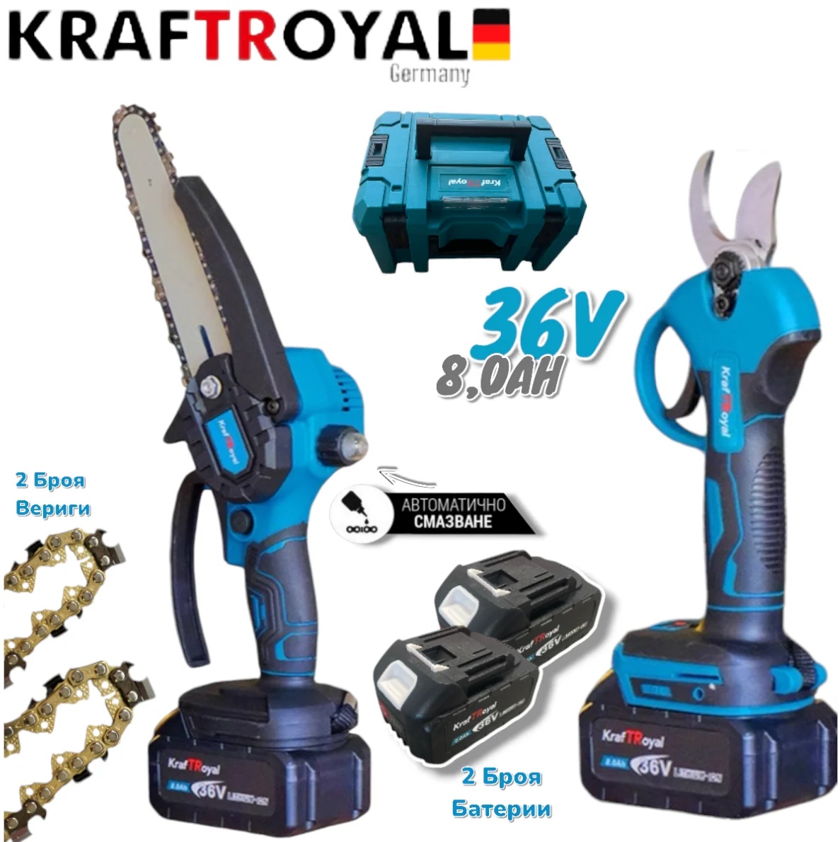 2в1 Комплект Безчеткова Лозарска Ножица и Мини Трион за Клони 36V KRAFTROYAL +