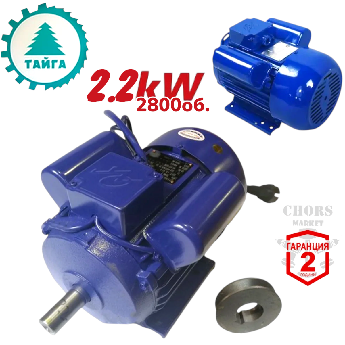 Монофазен Електромотор 2.2kW 2800 оборота ТАЙГА Елмотор Двигател с шайба