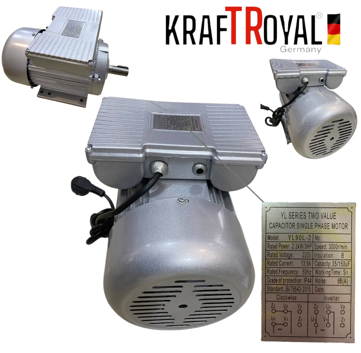 Монофазен Електромотор 3kW 3000 оборота в минута  KRAFTROYAL Елмотор Двигател с шайба за оста
