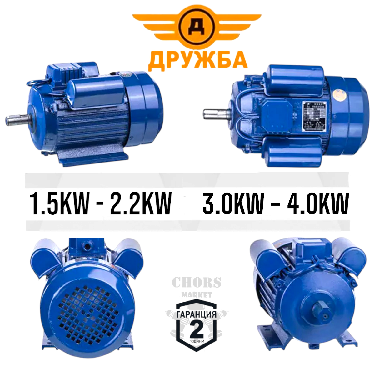 Професионално Описание за Монофазни Електромотори ДРУЖБА със Шайба за Оста свързани Кабели ( Медни намотки Чугунен корпус) :