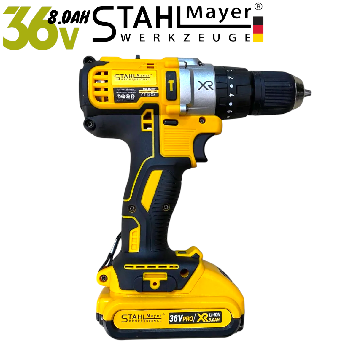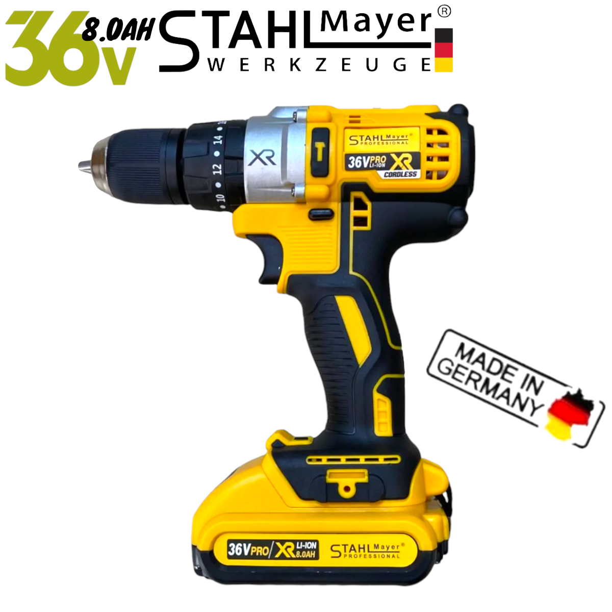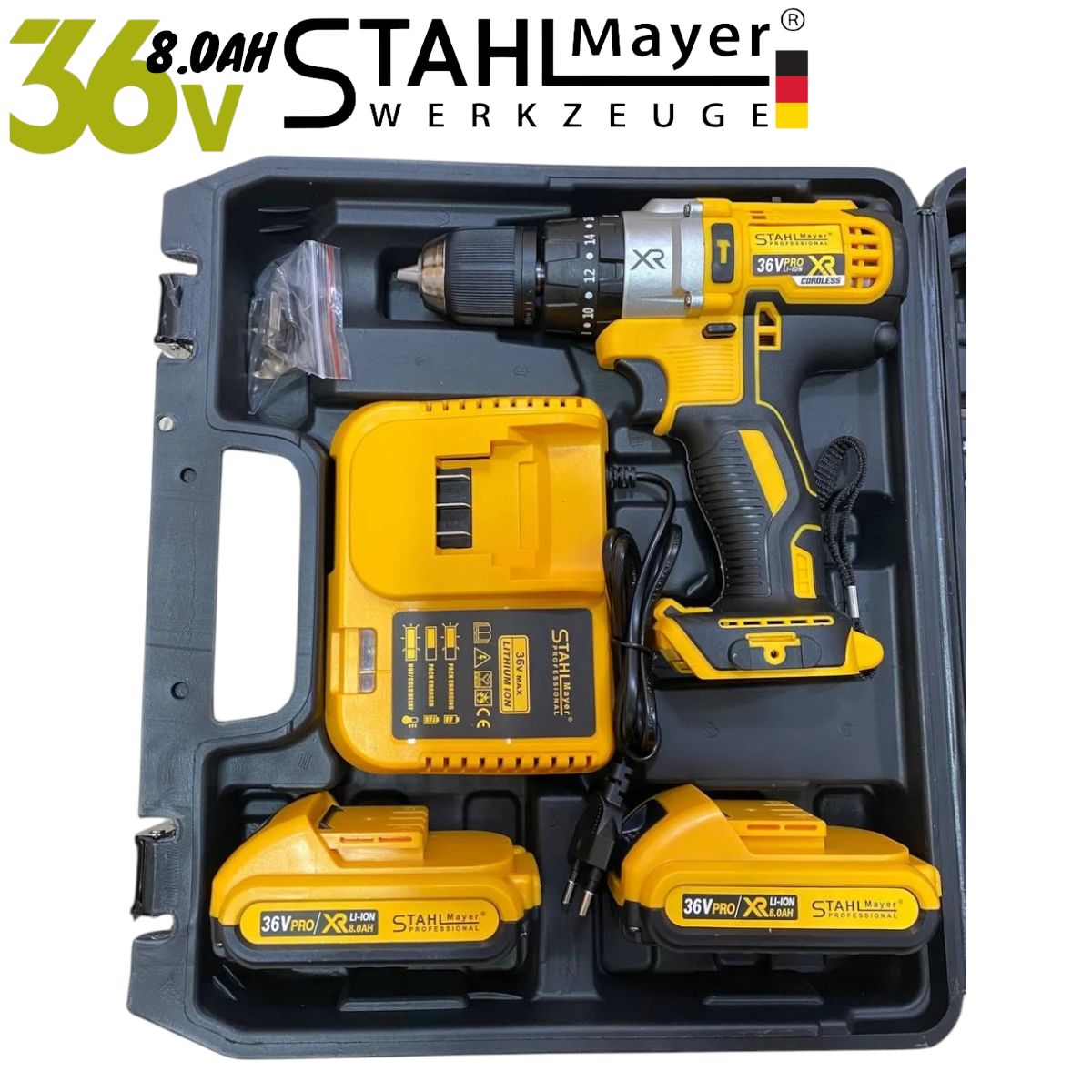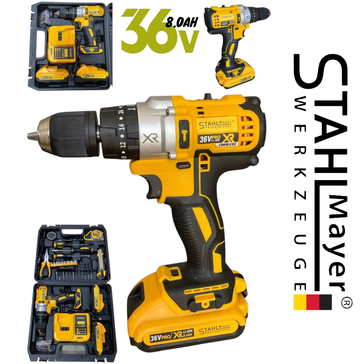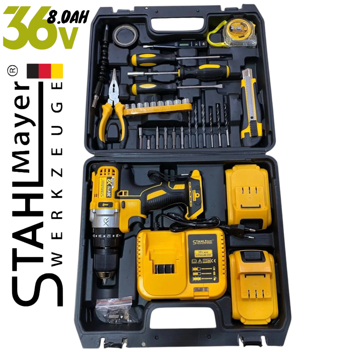 Акумулаторен Винтоверт STAHLMAYER XR 36V 8,0AH + Инструменти в Куфар