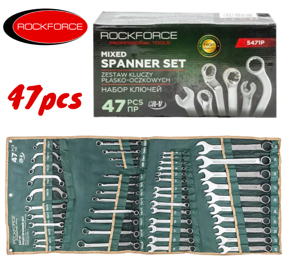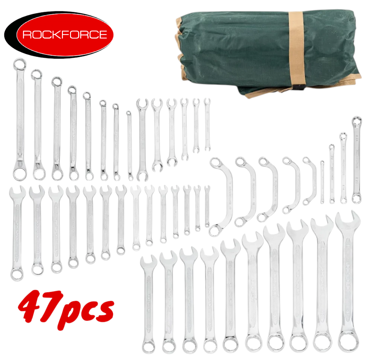 Професионален комплект комбинирани гаечни ключове ROCKFORCE – 47 части