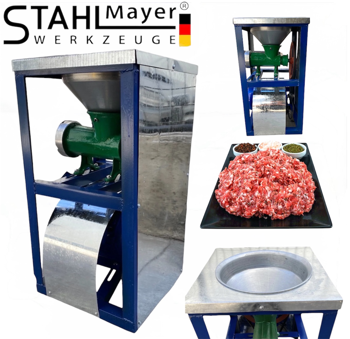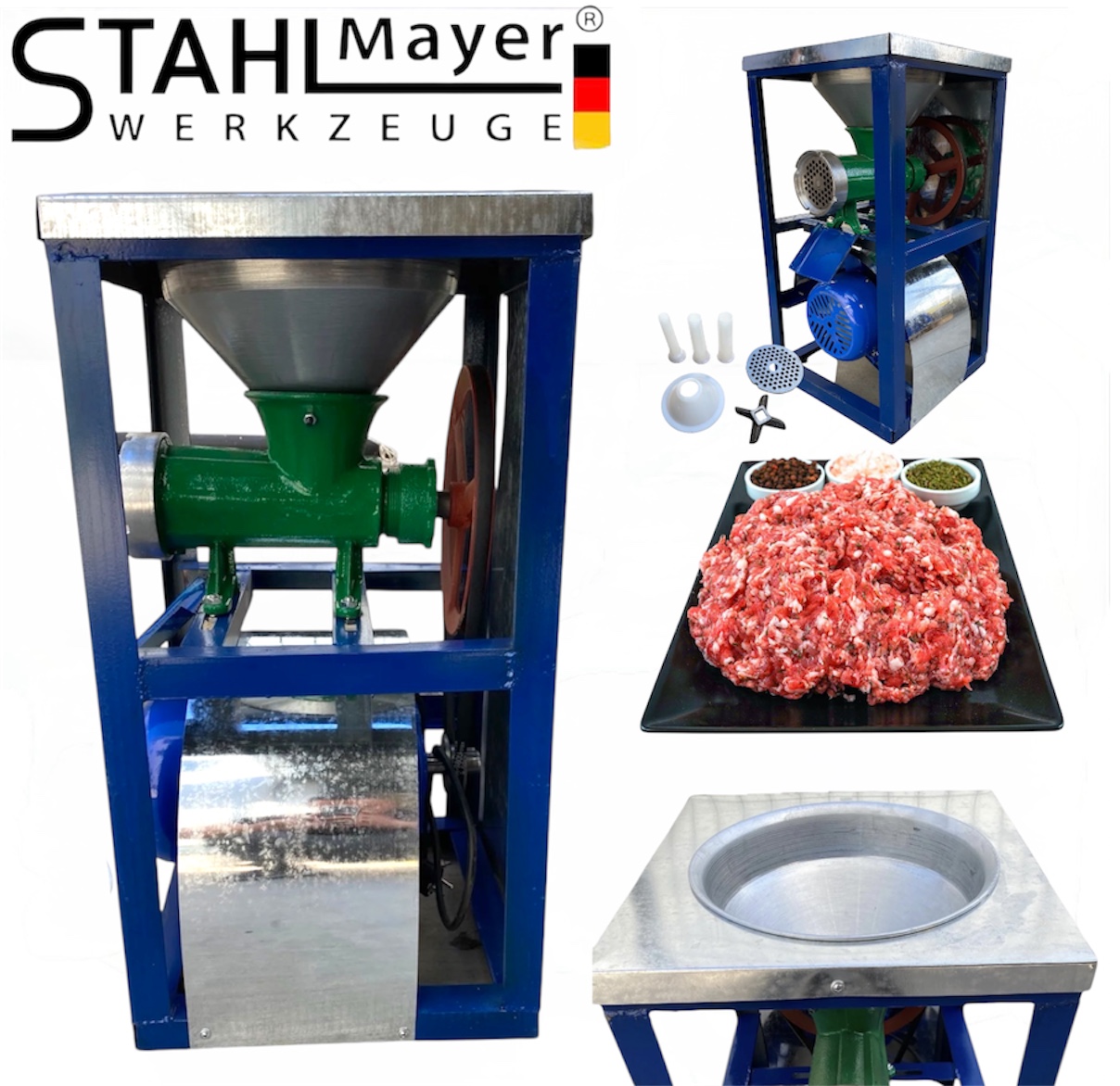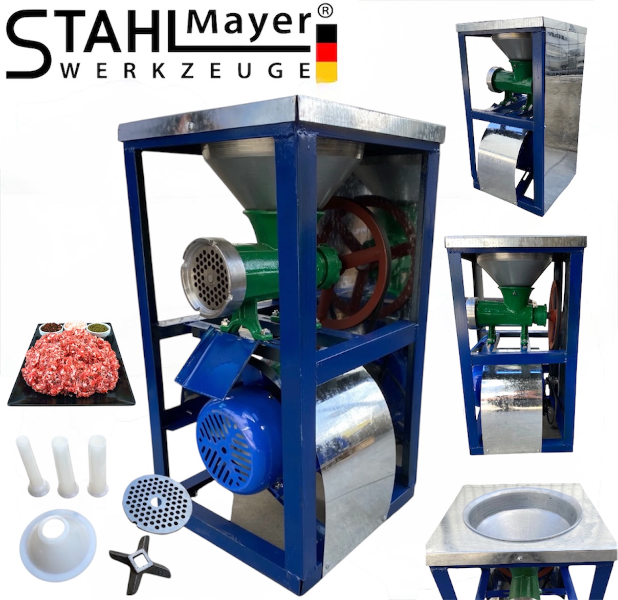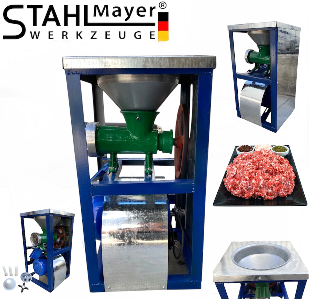 Чугунена Румънска месомелачка 32номер в комплект електромотор с медни намотки , стойка , метална фуния и плот