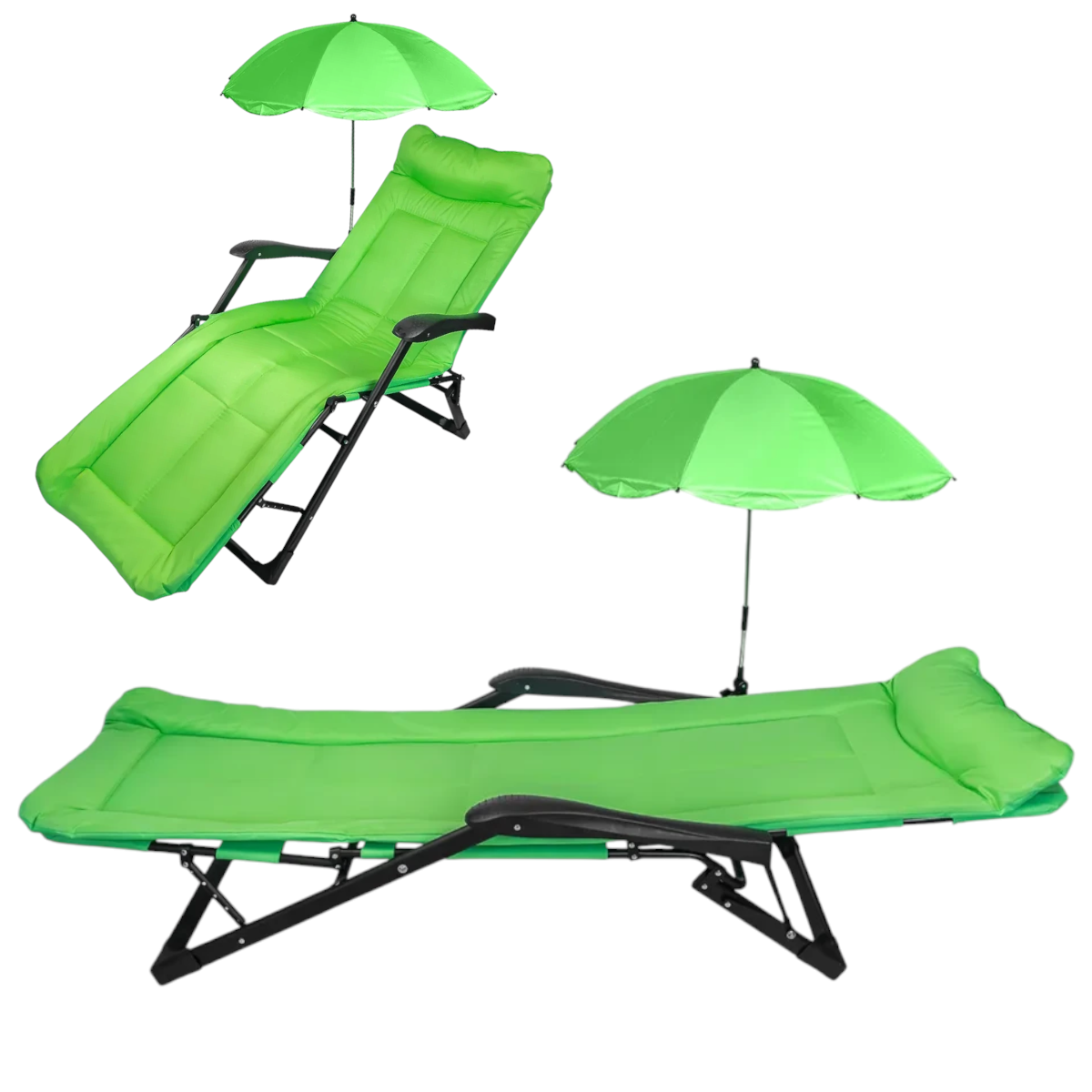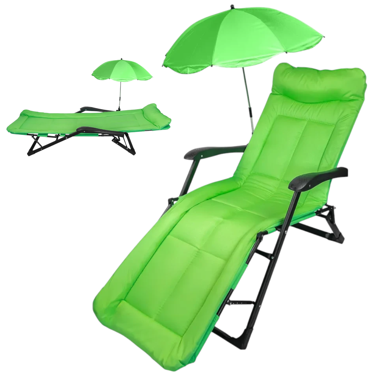 Сгъваем Стол Шезлонг с Чадър до 200кг Зелен