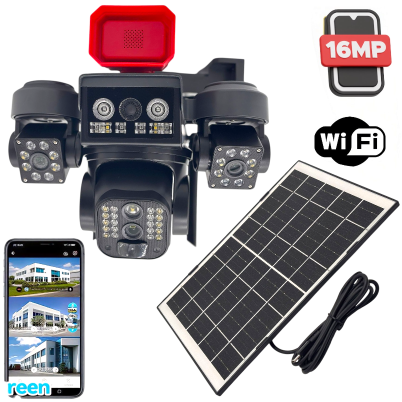 Соларната охранителна камера Sunvision е модерно и напълно автономно решение за външно видеонаблюдение. Съчетава тройна камера система, ултра висока резолюция 16 MP, соларно захранване и безжична Wi-Fi връзка, осигурявайки максимална сигурност дори на места без електричество.