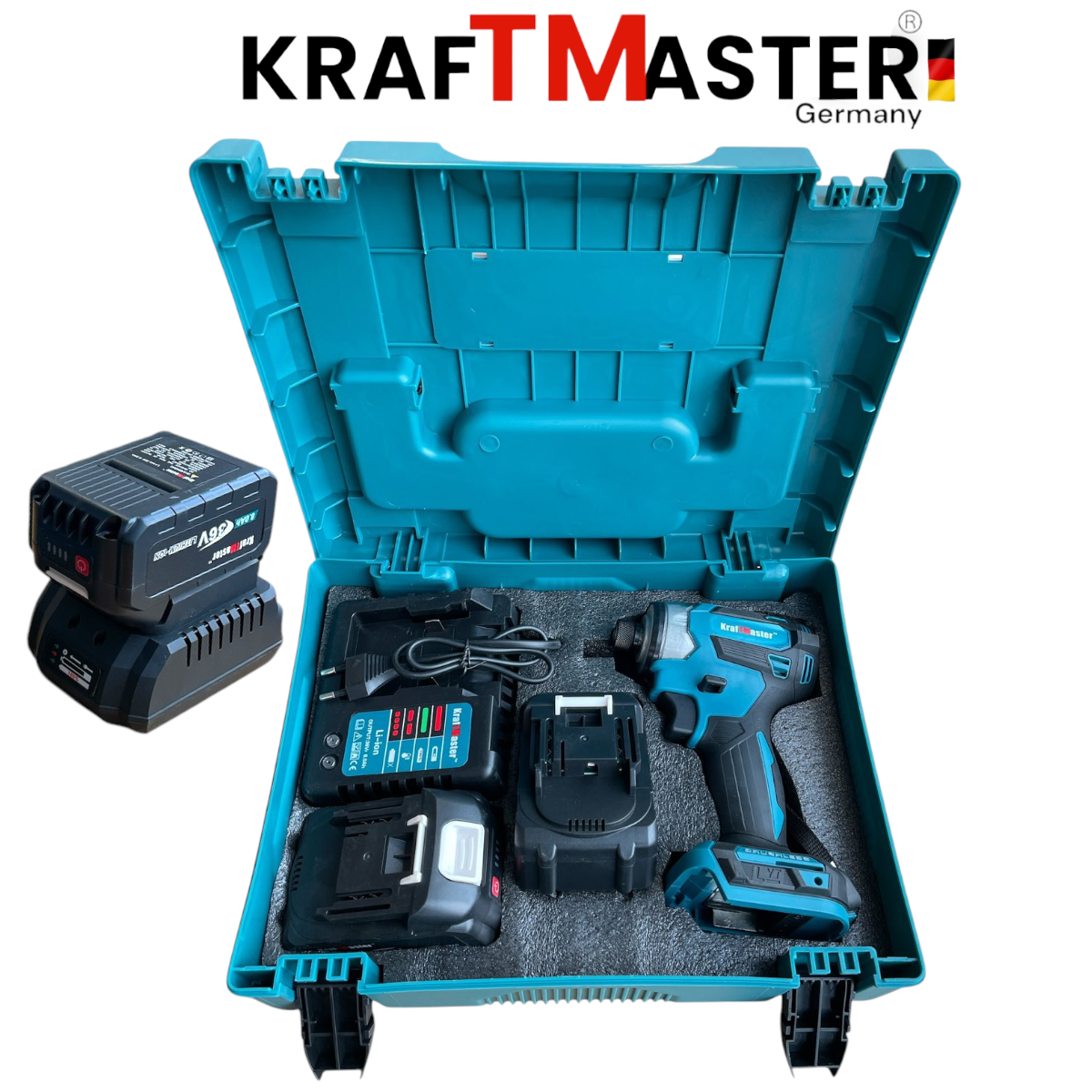 Ударен Винтоверт Импакт Драйв KRAFTMASTER 2 Батерии Зарядно Устройство и Куфар с ергономична ръкохватка с меко гумено покритие