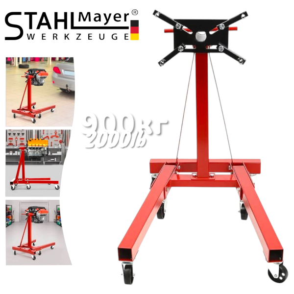 Изработена от високоякостна стомана и оборудвана с въртяща се на 360° глава, тя осигурява пълен контрол върху позиционирането на двигателя при всяка операция – от демонтаж и ремонт до прецизно сглобяване.