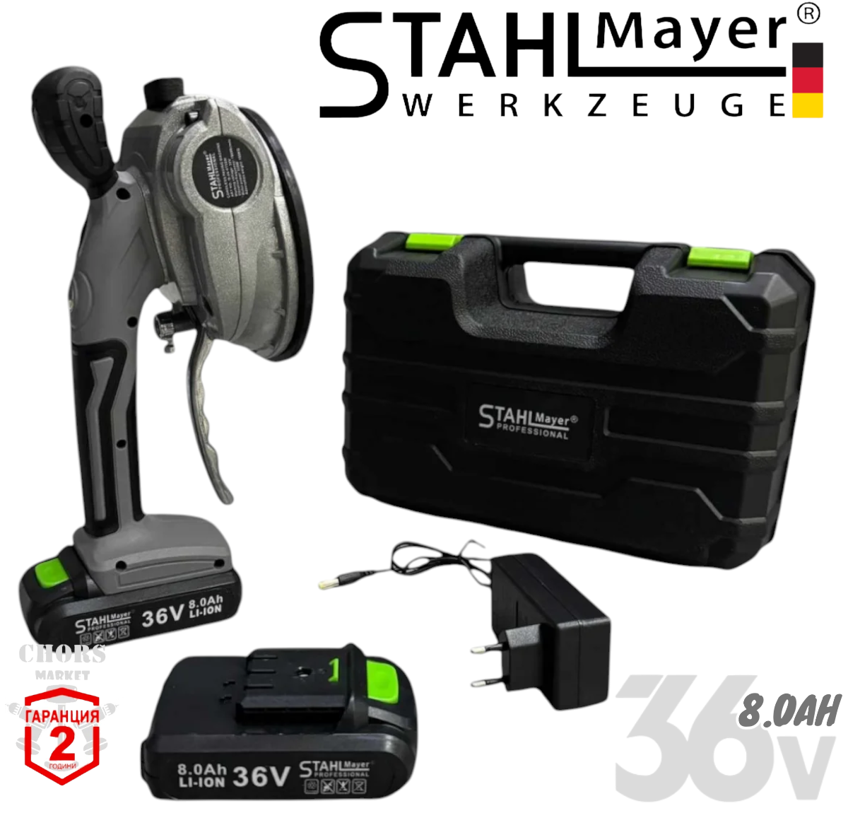 Притежава 6 регулируеми степени на работа. Работи с батерии 36V Li-Ion, 8Ah.
